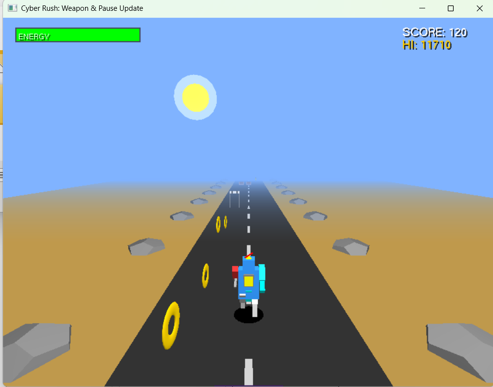 Welcome to Cyber Rush! Dive into a neon-soaked cyberpunk world where speed is everything. You are a rogue bot being chased by a terrifying glitch monster. This isn't just about dodging—you are armed!